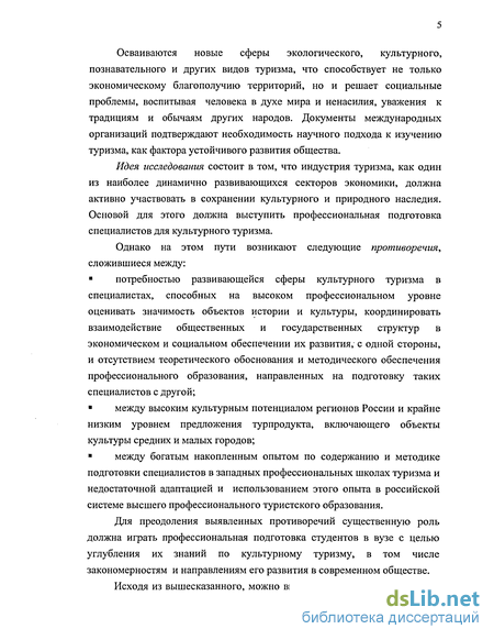 ГЛАВА 1. Проблема культурного туризма в высшем профессиональном туристском образовании 12