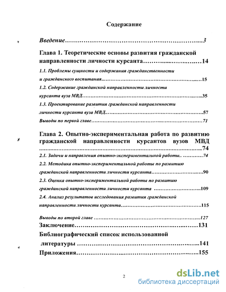 Во второй главе "Опытно-экспериментальная работа по развитию гражданской направленности курсанта вуза МВД" раскрываются задачи и направления опытно-экспериментальной работы; методика, подходы и анализ опытно-экспериментальной работы по развитию гражданской направленности личности курсанта как в учебное, так и во внеучебное время; программа развития гражданской направленности личности курсанта вуза МВД.