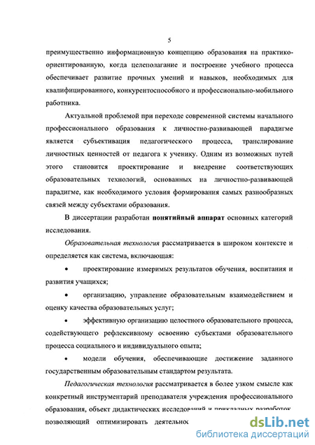 Теоретическая значимость и практическая актуальность разрешения выявленных противоречий и анализ состояния проблемы определили тему диссертации: «Развитие образовательных технологий в начальном профессиональном образовании»