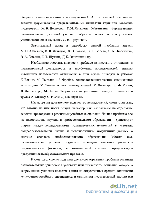 Актуальность и недостаточная разработанность данной проблемы в педагогической науке и практике обусловили выбор темы диссертационного исследования: «Развитие познавательных ценностей студентов колледжа в условиях педагогического общения».
