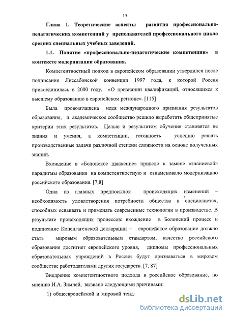 1.1.Понятие «профессионально-педагогические компетенции» в контексте модернизации образования. С. 15-31