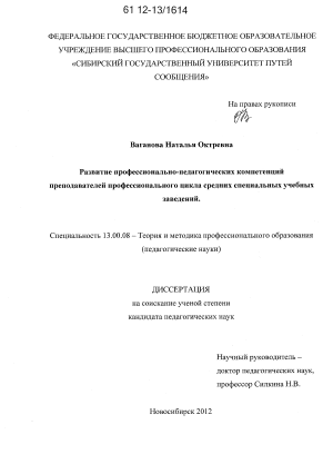 - Организационно-педагогические условия развития профессионально-педагогических компетенций преподавателей профессионального цикла на примере средних специальных учебных заведений железнодорожного транспорта