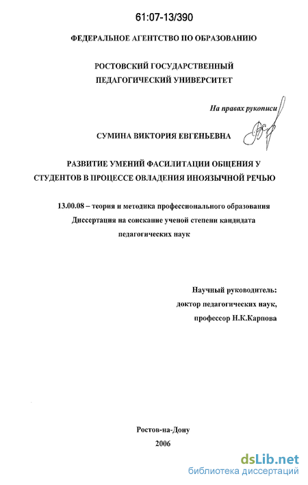 Итак, мы стремимся развить у студентов фасилитационные умения в процессе общения на иностранном языке, фасилитирующие проявление и развитие личностных качеств, психологическую готовность, процессуальную обученность.