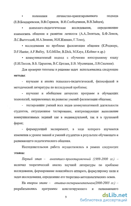 Первый этап - аналитико-проектировочный (1999-2000 гг.) -включил теоретический анализ научной литературы по проблеме исследования, формирование понятийного аппарата, формулировку цели и задач исследования, определение его теоретико-методологических основ.