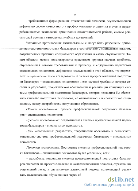 Указанные противоречия взаимосвязаны и могут быть разрешены приведением системы подготовки бакалавров в соответствие с социальным заказом, потребностями практики специального образования и самих обучающихся. Таким образом, можно констатировать: существует крупная научная проблема, обусловленная новыми требованиями к процессу и содержанию подготовки специальных психологов, дефицитом исследований в этой области, что определяет актуальность темы исследования «Система профессиональной подготовки бакалавров - специальных психологов» и его научной проблемы, которая состоит в разработке, теоретическом обосновании и реализации концепции системы профессиональной подготовки бакалавров, которая позволила бы обеспечить качество подготовки психологов, ее оптимальность и соответствие социальному заказу, потребностям получающих образование.