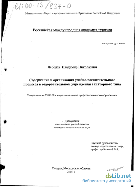 Предмет исследования - содержание и организация учебно-воспитательного процесса в детских оздоровительных учреждениях санаторного типа.