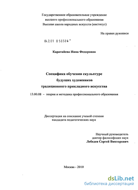 Глава 2. Содержание и методы обучения скульптуре будущих художников традиционного прикладного искусства 60