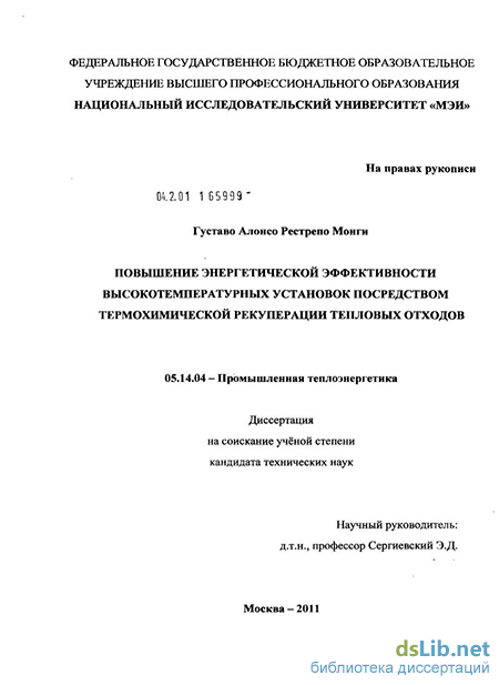 Целью работы является повышение энергетической эффективности высокотемпературных установок на основе термохимической рекуперации.