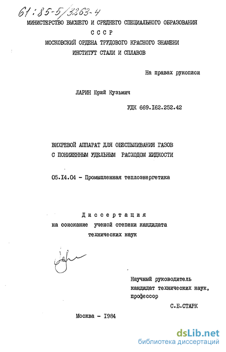 Работа выполнена в лаборатории гидромеханической очистки газов института "ВНИПШерметэнергоочистка" и на кафедре теплофизики и теплоэнергетики металлургического производства МИСиС.