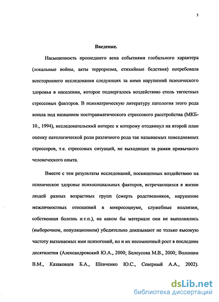 Насыщенность прошедшего века событиями глобального характера (локальные войны, акты терроризма, стихийные бедствия) потребовала всестороннего исследования следующих за ними нарушений психического здоровья в населении, которое подвергалось воздействию столь тягостных стрессовых факторов. В психиатрическую литературу патология этого рода вошла под названием постгравматического стрессового расстройства (МКБ-10., 1994), исследовательский интерес к которому отодвинул на второй план оценку патологической роли различного рода так называемых повседневных стрессоров, т.е. стрессовых ситуаций, не выходящих за рамки привычного человеческого опыта.