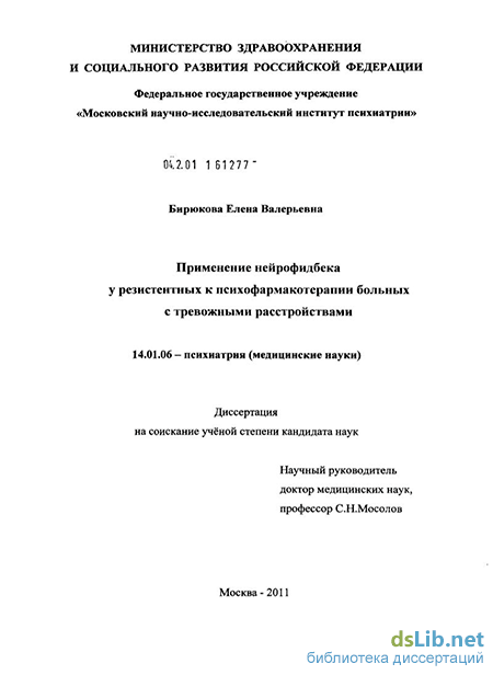1. Отработка методики и изучение эффективности НБОС в качестве терапии тревожных расстройств у больных, резистентных к адекватной ПФТ.