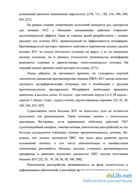 Существенная часть больных ХГС не выполняет (или не полностью выполняет) эти рекомендации. Такая ситуация связана с несколькими причинами. Во-первых, из-за выраженных побочных действий ПВТ (гриппоподобный синдром, тяжелая астения, психические расстройства) не все больные соглашаются соблюдать полную продолжительность лечения. Во-вторых, чем дольше проводится ПВТ, тем выше риск развития других осложнений лечения, в том числе декомпенсации и манифестации психических расстройств. Наконец, высокая стоимость противовирусных препаратов, в принципе исключает проведение ПВТ многим категориям больных ХГС [32, 33, 45, 50, 56, 58, 108, 200].