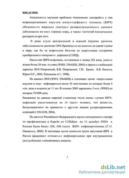 Пандемия ВИЧ-инфекции, начавшаяся с конца XX века, унесла жизни более 20 млн. человек (WHO, UNAIDS, 2004) и приняла глобальный характер (В.И Покровский, В.В. Покровский, Т.Н. Ермак, В.В. Беляева, Юрин О.Г., 2003, Рахманова А.Г, 1998).
