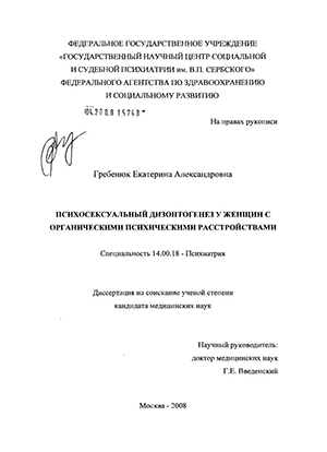 половой идентичности при органических психических расстройствах у женщин, дано целостное представление об особенностях сексуального дизонтогенеза Получены новые данные, касающиеся взаимосвязи органических психических расстройств и нарушений полового развития и половой идентичности у женщин Выявлены патогенетические механизмы половой дисфории у женщин с органическими психическими расстройствами