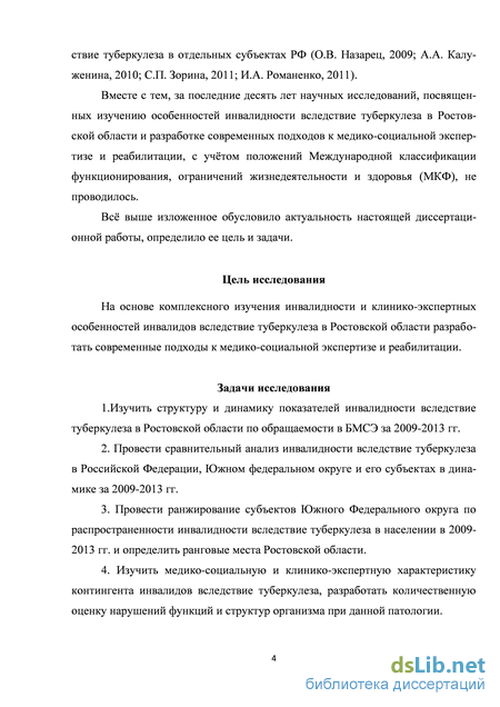 По данным литературы, наиболее изучены вопросы заболеваемости, диагностики и лечения туберкулеза, выполнены единичные работы посвященные проблемам инвалидности вследствие туберкулеза в отдельных субъектах Российской Федерации. Наименее изучены особенности формирования и структура инвалидности вследствие туберкулеза, современные подходы к медико-социальной экспертизе и реабилитации данного контингента инвалидов, что обусловило необходимость проведения настоящей диссертационной работы.