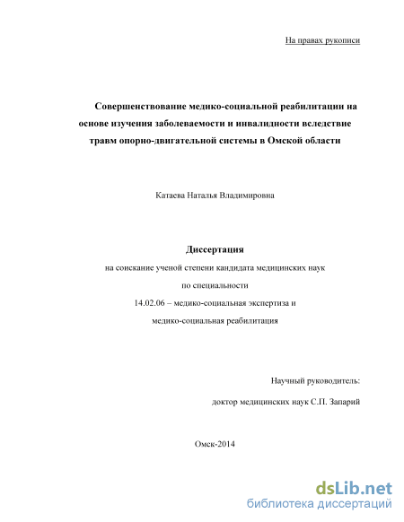 Работа является комплексным исследованием по изучению закономерностей формирования инвалидности взрослого населения вследствие травм ОДС в Омской области.