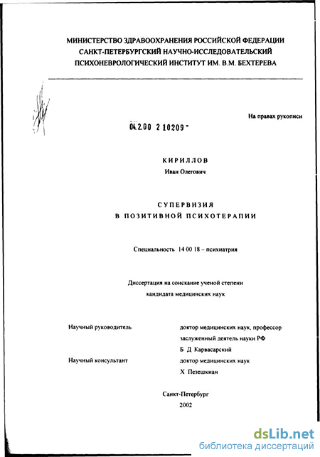 Результаты диссертации могут быть использованы при разработке методической документации по технике суперви-зии в позитивной психотерапии.