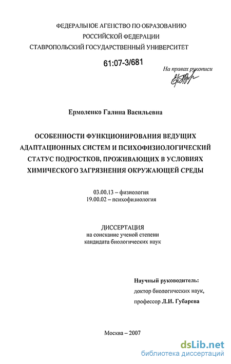 Апробация работы. Материалы диссертационной работы доложены и обсуждены на конференциях различного ранга: I Съезде физиологов СНГ (Дагомыс, 2005), XIX съезде Физиологического общества им. И.П. Павлова (Екатеринбург, 2004), научных конференциях с международным участием Российской Академии Естествознания «Экологический мониторинг» (Турция, 2006; Москва, 2006), III международной научно-практической конференции «Проблемы экологической безопасности и сохранение природно-ресурсного потенциала» (Ставрополь, 2006), VII Всероссийской конференции «І Іейрозндокринология - 2005» (Санкт-Петербург, 2005), Всероссийской научной конференции «Психология перед вызовом будущего» (Москва, 2006), Всероссийской научной Интернет-конференции «Пути становления субъекта в информационном обществе» (Ставрополь, 2004), межрегиональной конференции «Физиологические проблемы адаптации» (Ставрополь, 2003), XXXI научной конференции студентов и молодых ученых вузов южного федерального округа (Краснодар, 2004), 49-51 региональных научно-практических конференциях «Университетская наука-региону» (Ставрополь, 2004-2006).