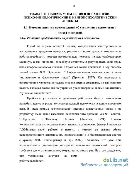 1.1. История развития представлений об утомлении в психологии и психофизиологии.11