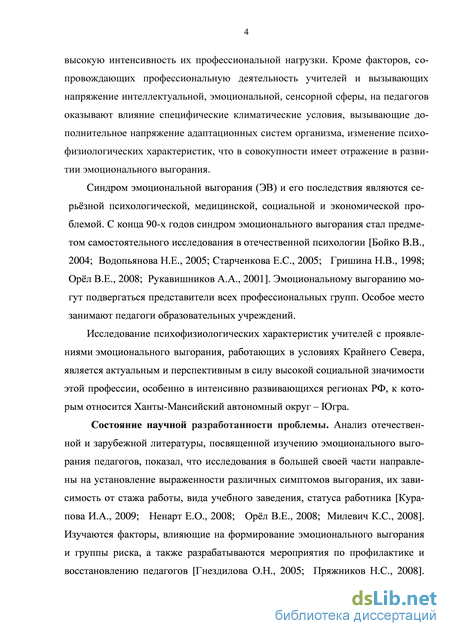 В рамках нашего исследования были рассмотрены особенности экологических условий Крайнего Севера и приравненных к ним местностей на примере Ханты-Мансийского автономного округа – Югры, а также рассмотрено влияние этих условий на организм человека. Проанализированы современные научные представления о феномене эмоционального выгорания, внешние и внутренние факторы, способствующие его формированию, стадии развития и проявления, а также его особенности у работников сферы образования в контексте специфики их деятельности. Выделены особенности и дана характеристика моторной и сенсорной асимметрии, а также асимметрии по психическим функциям, рассмотрены современные представления об особенности эмоционального реагирования в зависимости от преобладания функций того или иного полушария по психическим функциям и профилю латеральной организации; а также выделены межполушарные отношения в стрессовой ситуации. Подобран психодиагностический инструментарий для оценки психофизиологического состояния обследуемых и разработана программа для комплексной обработки результатов на базе ЭВМ. Изучен традиционный метод анализа вариабельности сердечного ритма на базе комплекса «Элокс-01С2», а также новый метод идентификации состояния психофизиологических функций человека в фазовом пространстве состояний, используемые в эмпирической части.