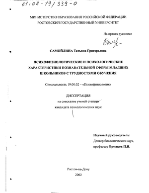Предмет исследования составили количественные и качественные характеристики сенсомоторных способностей, показатели межполушарной функциональной асимметрии (МФАс), особенности познавательных и регуляторных функций (внимания, восприятия, мышления), а также когнитивные стратегии и электрографические характеристики мозга у младших школьников с трудностями обучения.