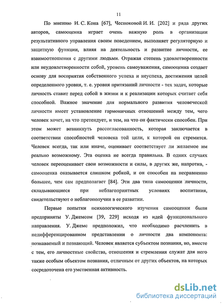 В самооценке представлены такие параметры психической деятельности личности, как ее притязания (Т. Дембо и L. Festinger [222]) и стремление к развитию, как отношение субъекта к самому себе, своим обязанностям, возможностям, результатам деятельности, занимаемой социальной позиции и т.д. Самооценка органично включена в общий процесс самопознания, который самым непосредственным образом затрагивает интересы личности, ее мотивационную сферу.