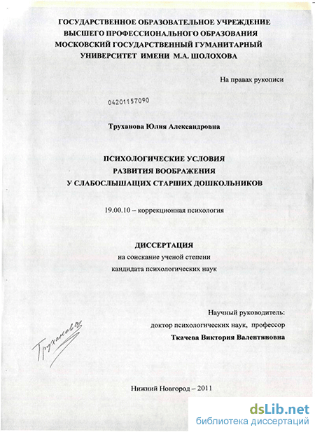 Практическое значение исследования. Определены и апробированы психологические условия формирования воображения у слабослышащих старших дошкольников в дошкольном образовательном учреждении компенсирующего вида для слабослышащих детей.