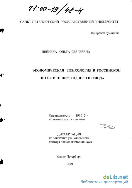Предает исследования - экономико-психологические явления, их обусловленность личностными свойствами субъекта хозяйствования и социально-политическими факторами в переходный период реформирования.