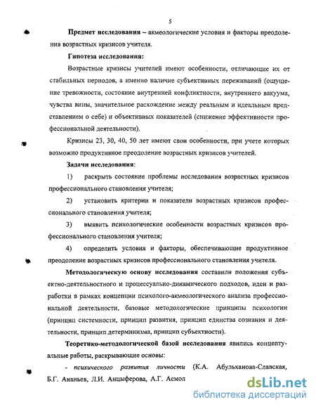 5 Предмет исследования - акмеологические условия и факторы преодоления возрастных кризисов учителя. Гипотеза исследования: