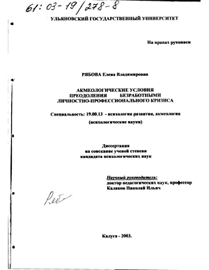 Состояние проблемы исследования. В последнее время проблема кризиса стала центральной не только для отдельных наук, но активно рассматривается в качестве актуальной междисциплинарной проблемы, которая не остается без внимания в психологических и акмеологичееких исследованиях. Анализу кризиса и кризисной личности посвящены работы Ам-брумовой А.Г., Бубеева Ю.А., Василюка Ф.Е., Васиной Н.В.. Козлова В.В., Поваренкова Ю.П. и др. Особенности кризиса личности безработного на сегодняшний день изучены мало, а то, что имеется носит фрагментарный характер. Социально-психологические аспекты безработицы рассматриваются в работах И.М. Городецкой, М.В. Дмитриевой, К. Леаны, Л. Пельц-ман, Д. Фельдман, Т.С. Чуйковой и др. Потеря работы, блокируя у человека возможность профессионального развития, достижения им профессионализма, становится причиной не только профессионального, но и личностного кризиса. Вопросы акмеологии, касающиеся эффективного развития и задействования творческого потенциала, продуктивной профессионализации, личностно-профессионального развития, научного моделирования раскрыты в трудах К.А. Абулъхановой, Б.Г. Ананьева, Е.Н. Богданова. А.А. Бодалева, А.А. Деркача, В.Г. Зазыкина, Н.И. Калакова, Н.И. Конюхова, Н.В. Кузьминой, Л.Г. Лаптева, А.К. Марковой, В.Г. Михайловского и Др.
