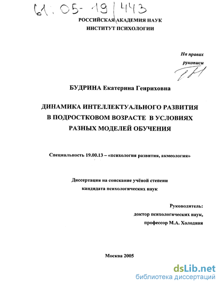 Наличие данного противоречия делает актуальным исследование динамики интеллектуального развития на всём протяжении подросткового возраста в условиях разных моделей обучения.