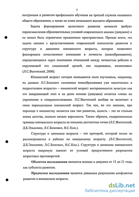 6. Формально-образовательное деление возрастов (основная школа -до 14 лет, старшая школа - 15-16 лет, младшие курсы вузов - 17-18 лет, старшие курсы вузов - 19-21 год) и содержательная динамика внутри юношеского возраста (воображение образа взрослости - 13-14 лет, идеализирование - 15-18 лет, планирование - до 21 года) не совпадают. Юноши и девушки в связи с этим противоречием попадают в ситуации рассогласования между внутренней динамикой возраста и требованиями образовательных институтов.