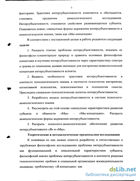 Теоретические и методологические предпосылки исследования К основным из них можно отнести разработку в отечественных и зарубежных философских исследованиях проблемы интерсубъективности как функциональной и описательной характеристики субъекта; философский анализ проблемы интерсубъективности в контексте решения гносеологических проблем и социальной организации жизнедеятельности индивида; проблематику «Я-концепции» как показателя уровня развития