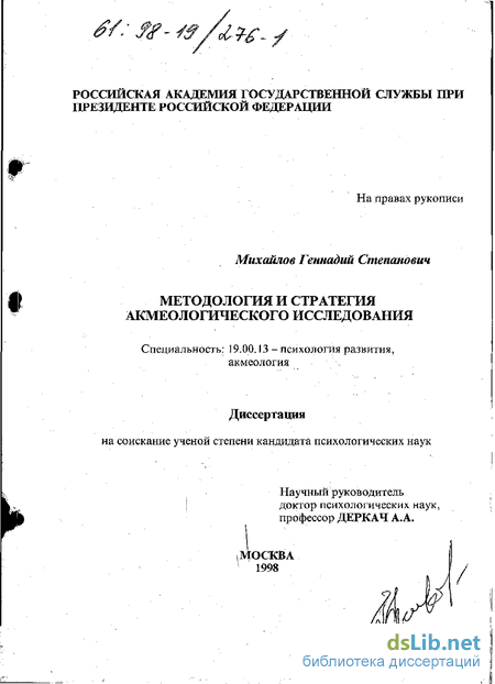 методологии вообще, как якобы основного препятствия на пути развития науки. Во-вторых, в силу близости акмеологии ряду других наук высказываются сомнения в самостоятельности ее предмета исследования, предпринимаются попытки превратить ее в чисто прикладное знание. Воссоздание системы ее методологии - основное доказательство ее самостоятельности, оригинальности, научной и социальной ценности.