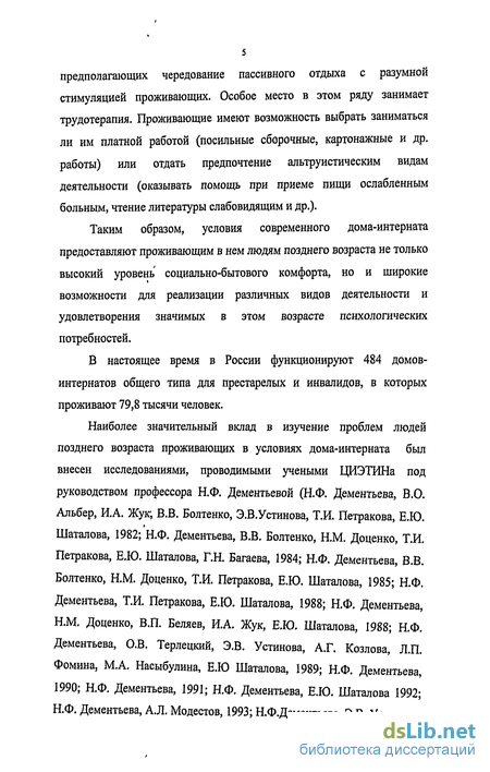 Таким образом, условия современного дома-интерната предоставляют проживающим в нем людям позднего возраста не только высокий уровень социально-бытового комфорта, но и широкие возможности для реализации различных видов деятельности и удовлетворения значимых в этом возрасте психологических потребностей.