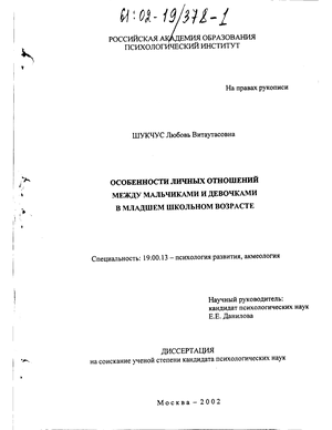 В младшем школьном возрасте личные отношения между мальчиками и девочками являются важной подструктурой межличностных отношений детей и характеризуются эмоциональной насыщенностью и личностной значимостью.