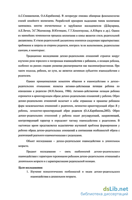 Предмет исследования - связь особенностей детско-родительскої о взаимодействия с характером переживания ребенком детско-родительских отношений в дошкольном возрасте и с характеристиками родительской позиции.
