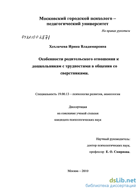 Исходным для нашей работы стало общепризнанное в отечественной и в зарубежной психологии положение о ведущей роли родительского отношения в формировании психики и личности ребёнка.
