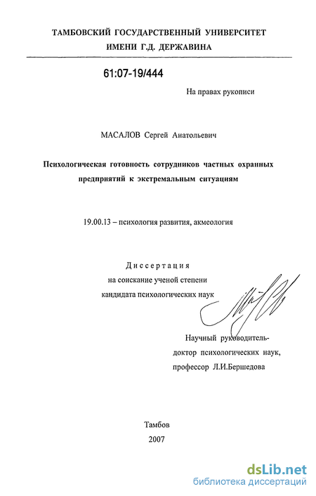 - Психологическая готовность сотрудников частных охранных предприятий к экстремальным ситуациям