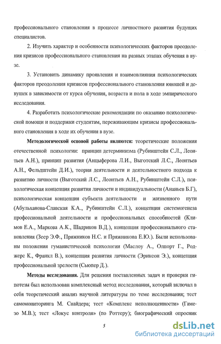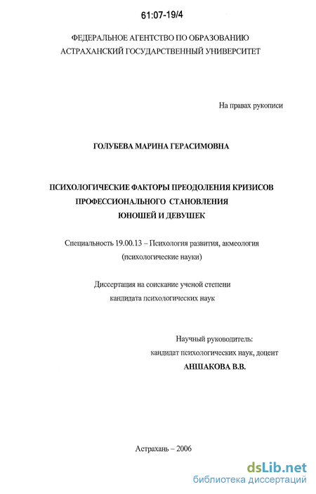 Таким образом, исследование психологических факторов преодоления кризисов профессионального становления, динамики их развития в процессе учебно-профессиональной деятельности будущего специалиста, позволяющее выявить новые резервы преодоления психологических кризисов, приобретает несомненную актуальность.