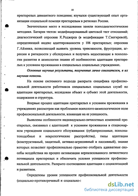3. Процесс адаптации престарелых к условиям проживания в специальных домах-интернатах как проблемное психолого-ак-меологическое поле достижения успешности профессиональной деятельности работников специальных социальных служб 45-68