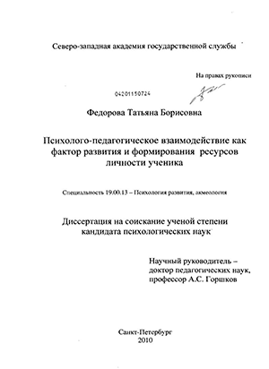 Диссертационная работа дает ценную информацию, которая найдет применение в работе практических психологов, обеспечивающих совершенствование процесса личностного развития учителя и ученика в системе школьного образования.