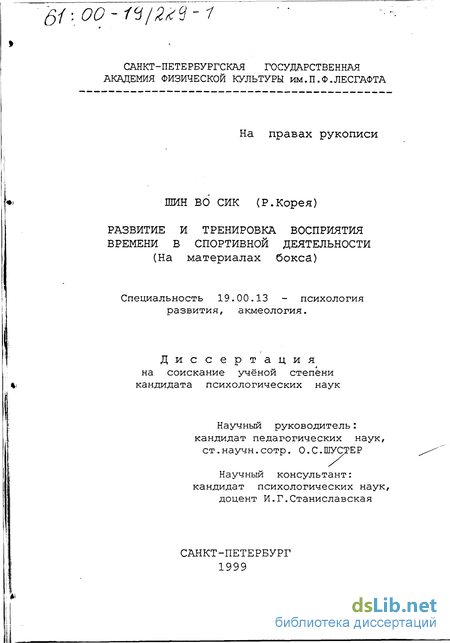 Объектом исследования явились конкретные проявления чувств времени у спортсменов в условиях тренировок и соревнований в боксе. Эксперименты проведены в г.Сеулес (Р.Корея) на боксерах разной квалификации (148 чел.).