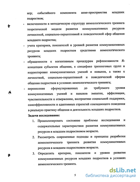 Разработать и экспериментально проверить эффективность акмеологического тренинга развития коммуникативных ресурсов в младшем подростковом возрасте.