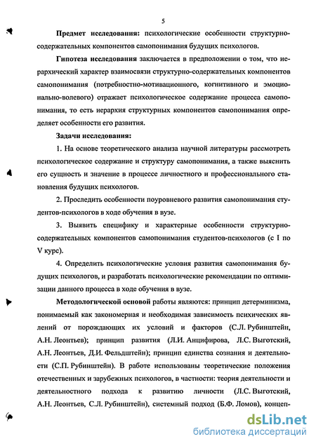 В связи с вышесказанным в качестве проблемы исследования выступает противоречие между потребностью психологической теории и практики в знании особенностей развития самопонимания будущих психологов, позволяющее выявить новые резервы эффективности их профессиональной подготовки, и недостаточной раскрытостью поднимаемой проблемы в научной литературе. Данное обстоятельство и определило выбор темы нашего диссертационного исследования.