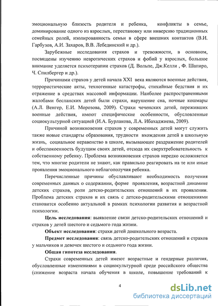 Предмет исследования: связь детско-родительских отношений и страхов у мальчиков и девочек шестого и седьмого года жизни.
