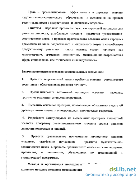 Работа посвящена изучению влияния художественно-эстетического образования, включающего практическое освоение основ народных промыслов, на развитие личности в подростковом и юношеском возрастах.