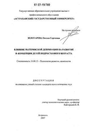 Актуальность исследования. В современном обществе все больше внимания уделяется проблемам семьи* семейным отношениям. Изменения уклада общественной жизни, смена отношений внутри семьи, утеря идеалов и образцов для подражания обостряют проблему влияния родительско-детских отношений в семье на развитие Я-концепции детей подросткового возраста. У подростков, находящихся в условиях недостаточности атмосферы эмоциональной теплоты и не испытывающих привязанности к матери, или к лицу, замещающему мать, может нарушаться ход нормального развития Я-концепции, как следствие данной депривации. Развитие Я-концепции как регулятора поведения и деятельности в значительной степени зависит от микросоциального окружения, влияющего на социальную адаптацию личности подростка, а дефицит эмоциональных контактов с матерью ограничивает возможность усвоения социального опыта и самореализации. Таким образом, требуется пристальное внимание к взаимосвязи феномена материнской депривации и Я-концепции, и особенно в подростковом возрасте, являющимся одним из важнейших периодов становления самосознания личности.