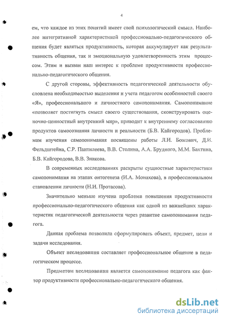 самопонимание педагога является одним из внутренних факторов, включенных в профессионально-педагогическое общение и оказывающих существенное влияние на продуктивность этого процесса;