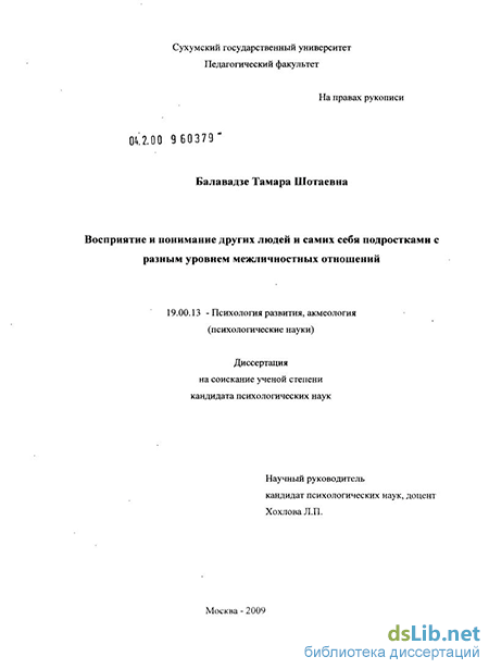 1 глава. Психологические исследования восприятия и понимания подростками других людей и самих себя с позиции субъектного подхода